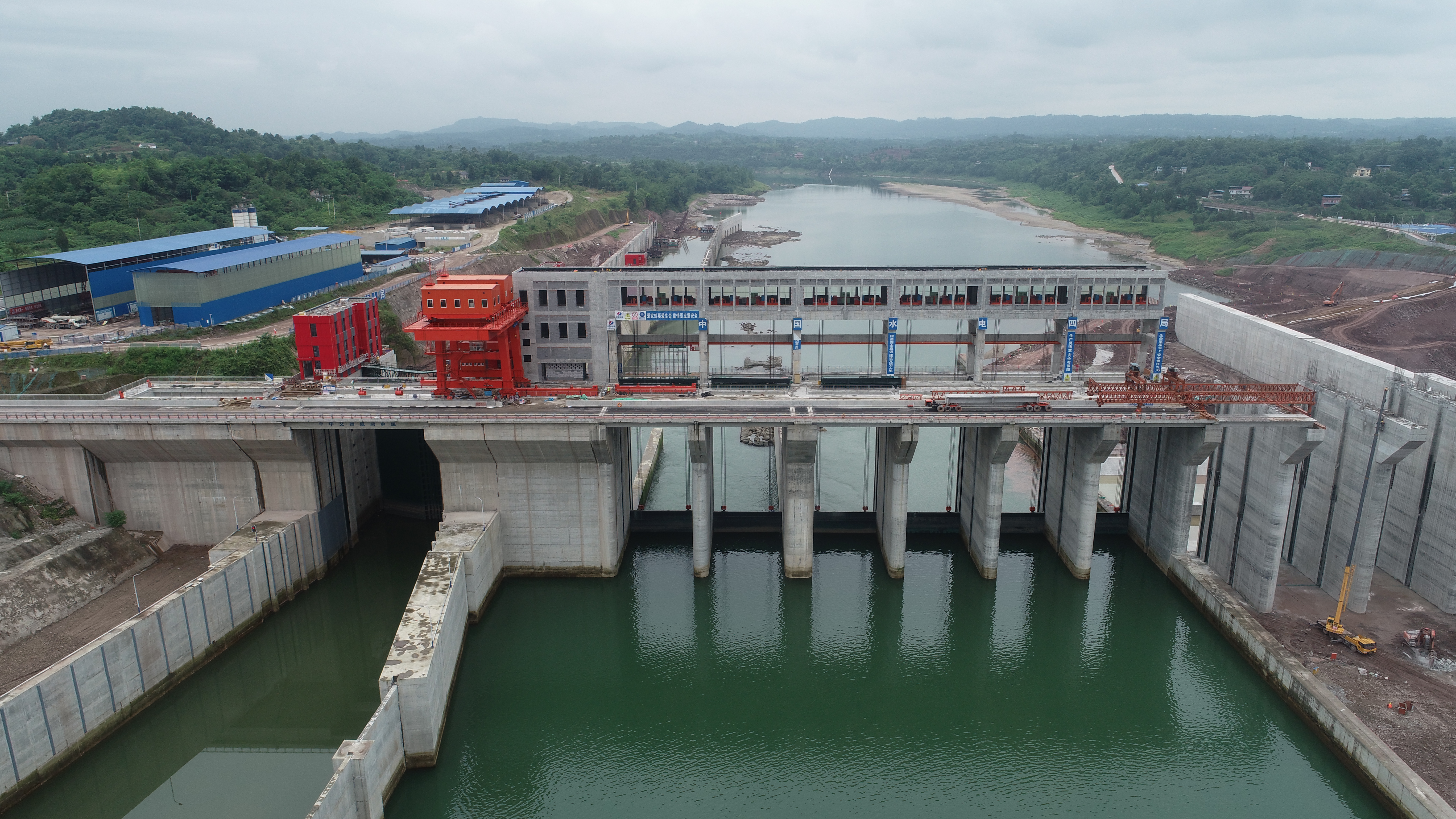 10-16金塘沖水庫(kù)八孔弧門成功吊裝